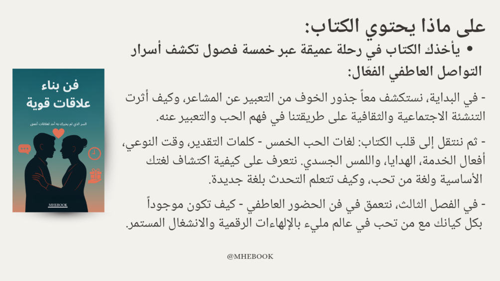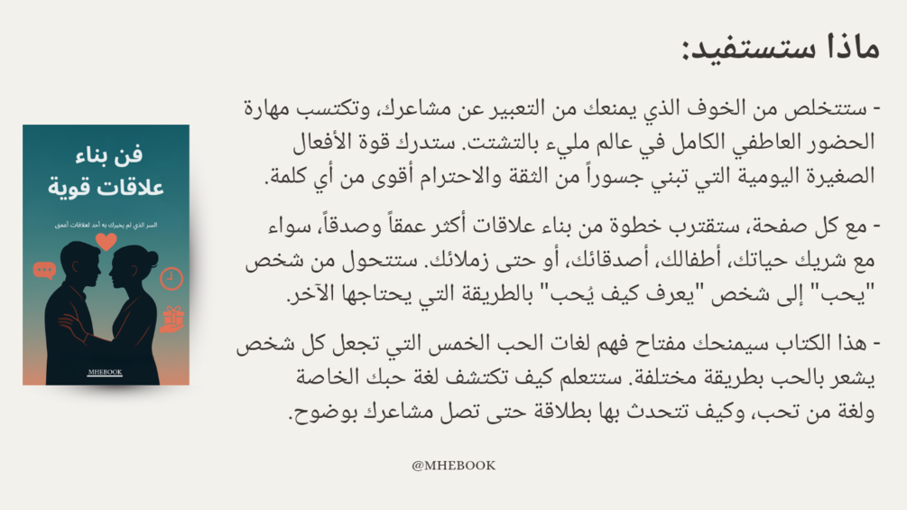 - يتضمن نصائح بسيطة لتحسين التواصل وفهم احتياجات الآخرين