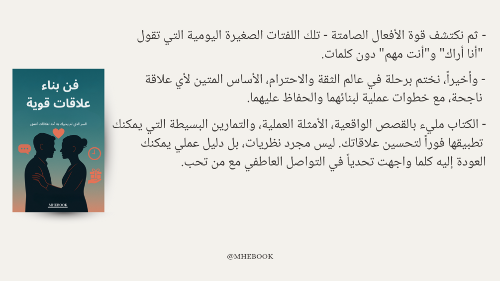 - يشرح الكتاب كيف تؤثر الأفعال الصغيرة اليومية على العلاقات